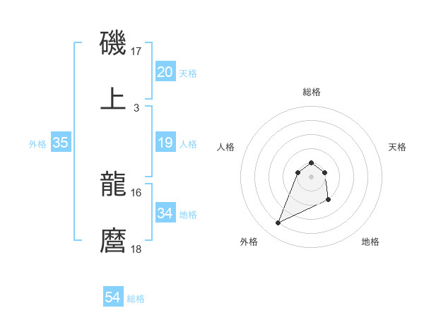 磯上 龍麿さんの天格は20画の1点!