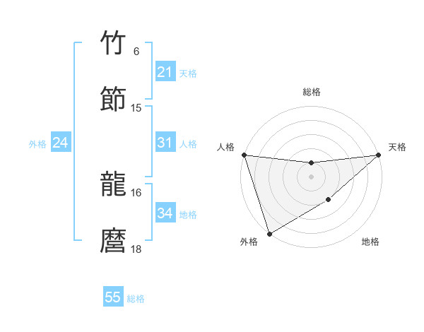 竹節 龍麿さんを姓名の画数から五運を鑑定