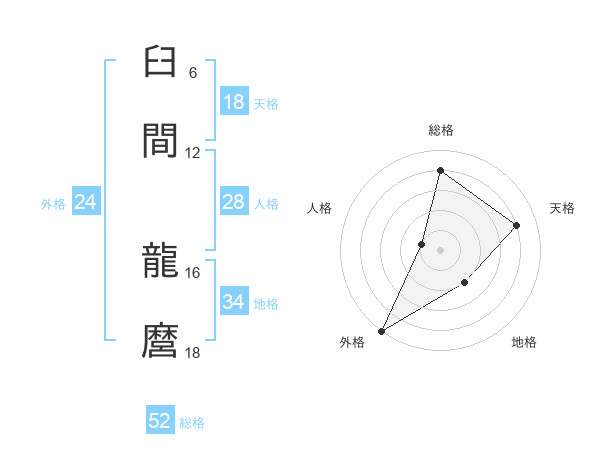 臼間 龍麿さんを姓名の画数から五運を鑑定