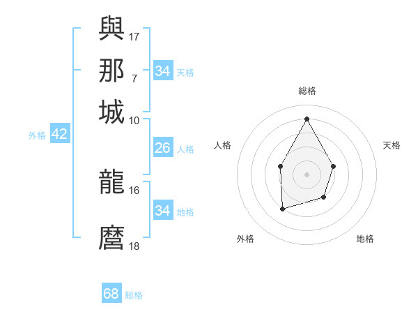 與那城 龍麿さんの総格は68画の4点!