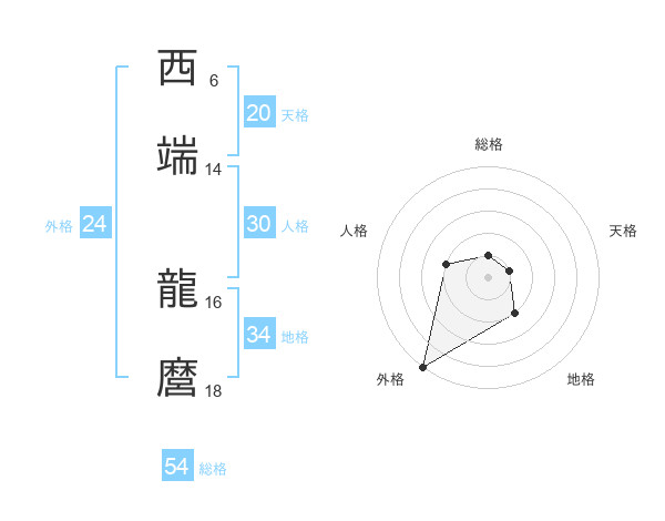西端 龍麿さんを姓名の画数から五運を鑑定