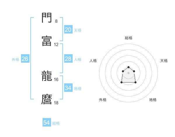 門富 龍麿さんを姓名の画数から五運を鑑定