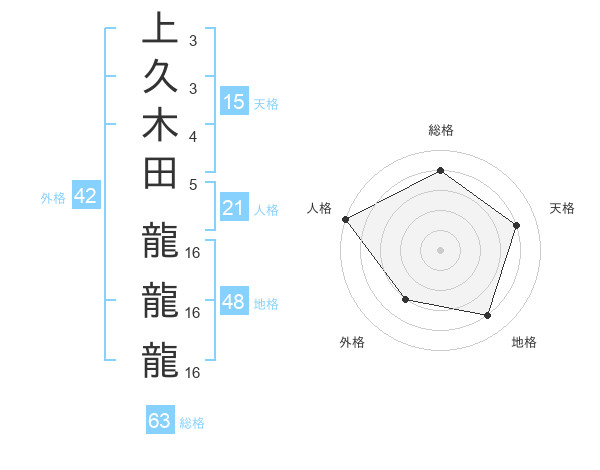 上久木田 龍龍龍さんを姓名の画数から五運を鑑定