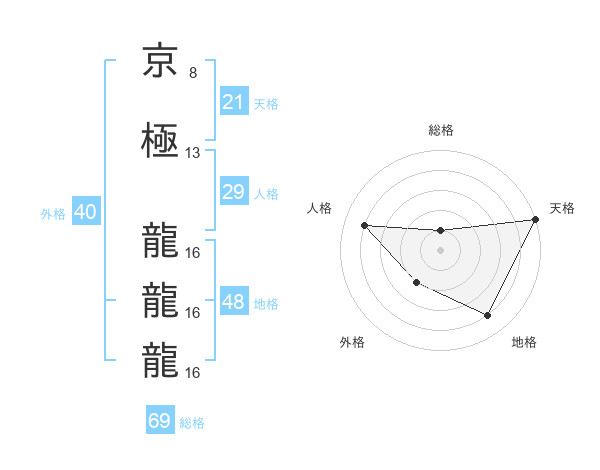 京極 龍龍龍さんの総格は69画の1点!