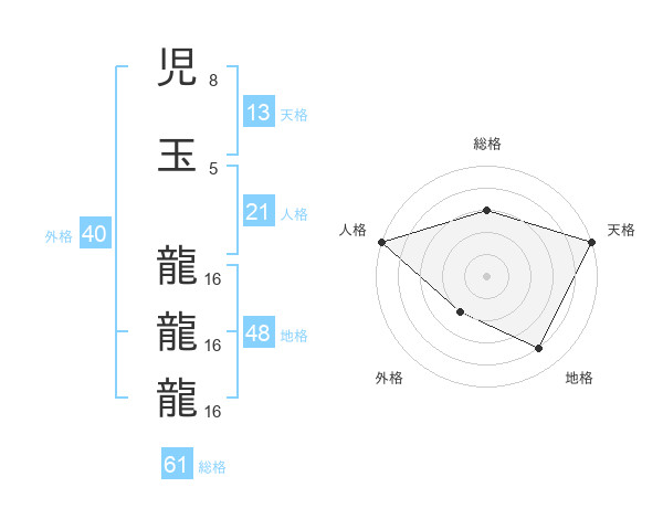 児玉 龍龍龍さんの総格は61画の3点!