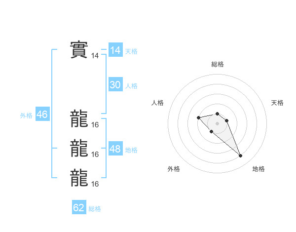 實 龍龍龍さんの総格は62画の1点!