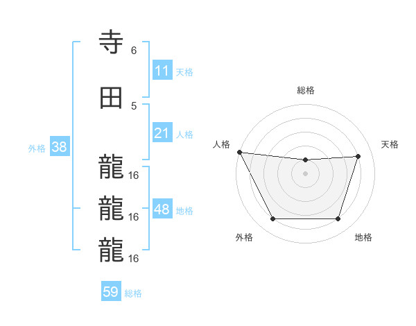 寺田 龍龍龍さんの総格は59画の1点!