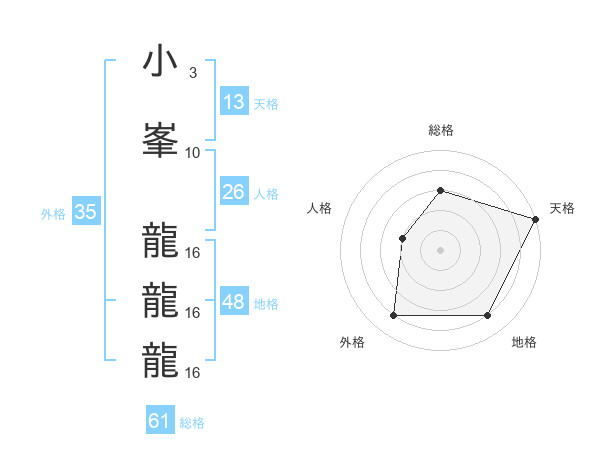 小峯 龍龍龍さんの総格は61画の3点!