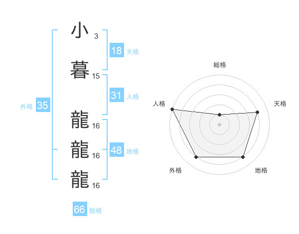 小暮 龍龍龍さんの総格は66画の1点!