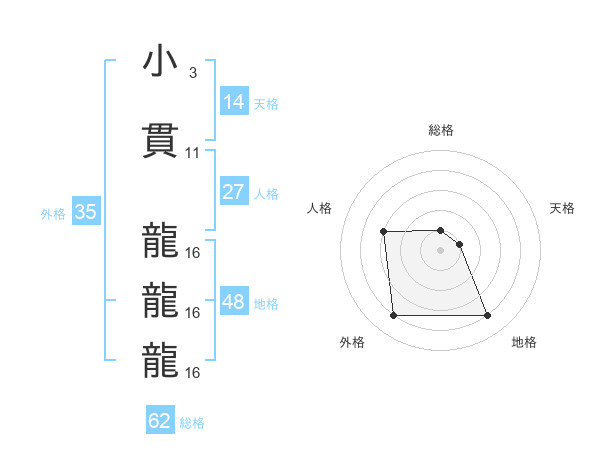 小貫 龍龍龍さんの総格は62画の1点!