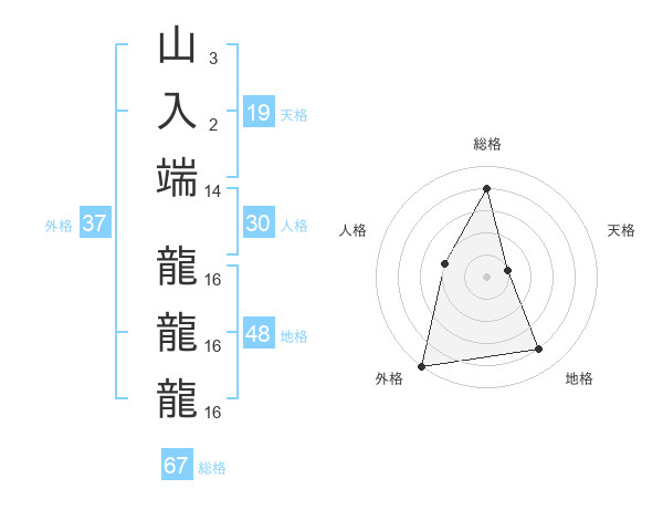 山入端 龍龍龍さんの外格は37画の5点!