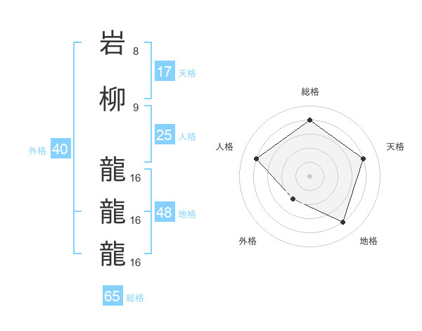 岩柳 龍龍龍さんを姓名の画数から五運を鑑定