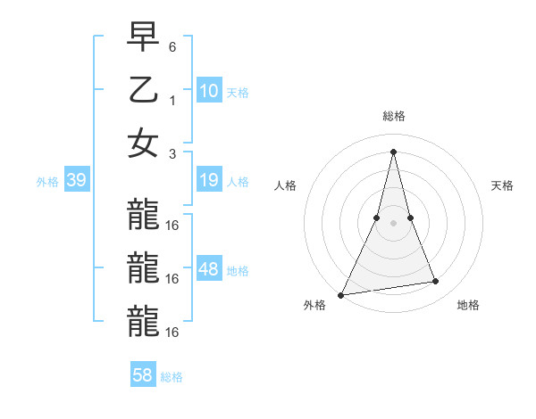 早乙女 龍龍龍さんを姓名の画数から五運を鑑定