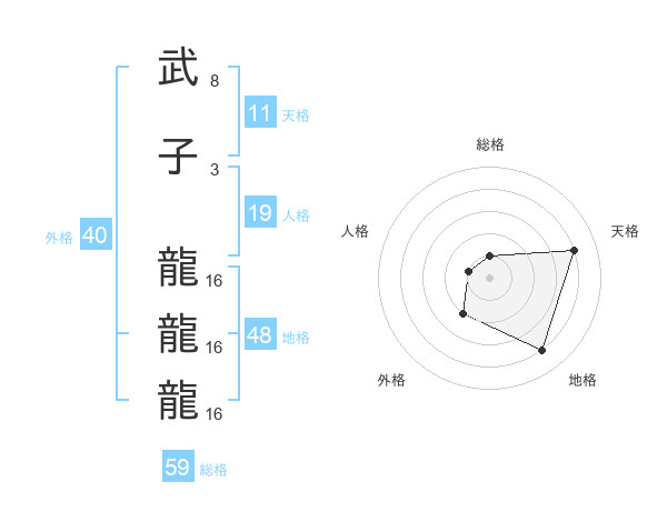 武子 龍龍龍さんを姓名の画数から五運を鑑定