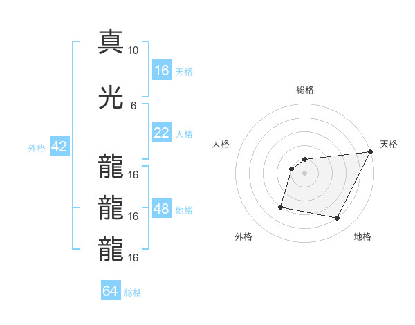 真光 龍龍龍さんの天格は16画の5点!