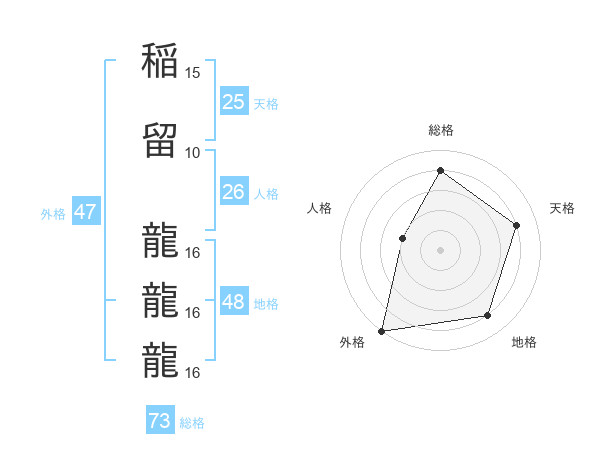稲留 龍龍龍さんの総格は73画の4点!
