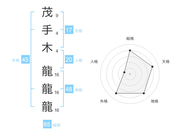 茂手木 龍龍龍さんを姓名の画数から五運を鑑定