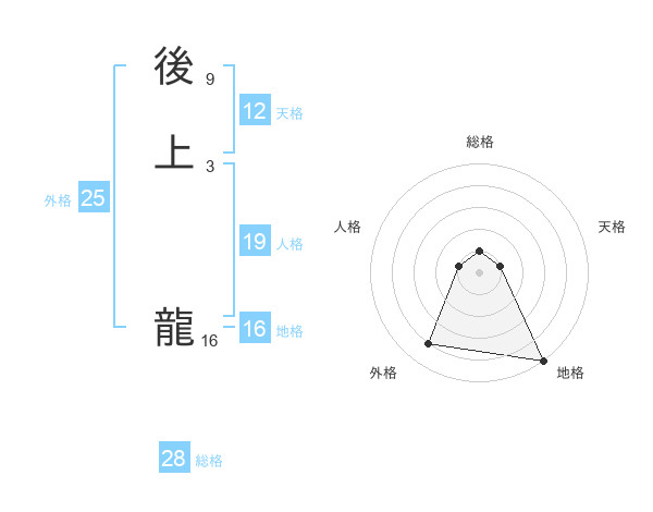 後上 龍さんの総格は28画の1点!
