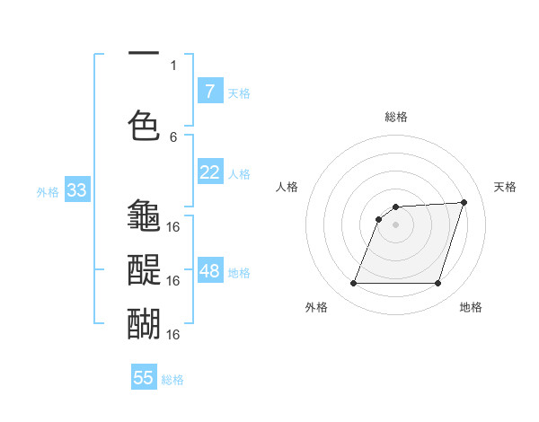 一色 龜醍醐さんを姓名の画数から五運を鑑定