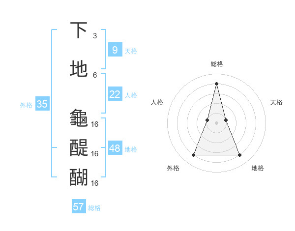 下地 龜醍醐さんを姓名の画数から五運を鑑定