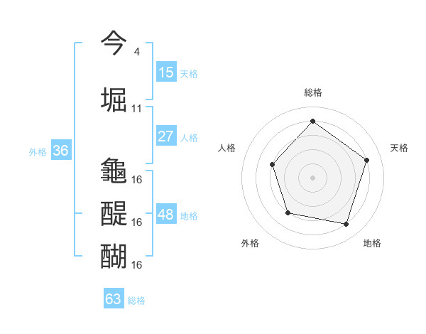 今堀 龜醍醐さんを姓名の画数から五運を鑑定