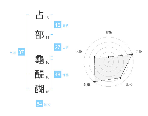 占部 龜醍醐さんを姓名の画数から五運を鑑定
