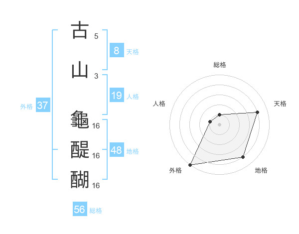 古山 龜醍醐さんの外格は37画の5点!