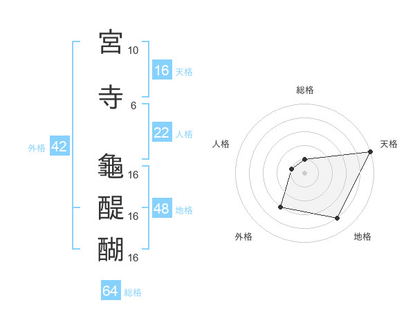 宮寺 龜醍醐さんを姓名の画数から五運を鑑定