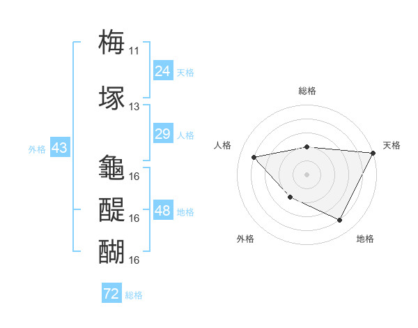 梅塚 龜醍醐さんを姓名の画数から五運を鑑定