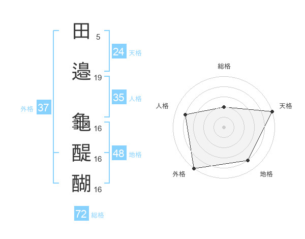 田邉 龜醍醐さんの外格は37画の5点!