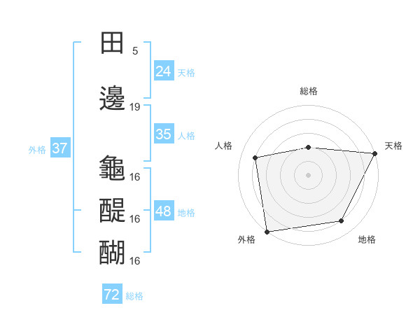 田邊 龜醍醐さんを姓名の画数から五運を鑑定