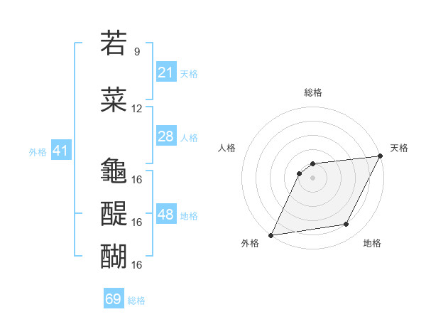 若菜 龜醍醐さんの外格は41画の5点!