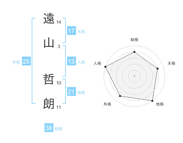 遠山 哲朗さんの総格は38画の4点!